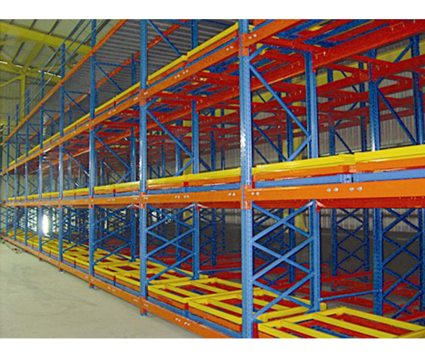 1、推拉式货架是由托盘小车等典型结构件组成,托盘车具有可流动特性,货物被规定于货架的一端进出,并遵循先进后出顺序。