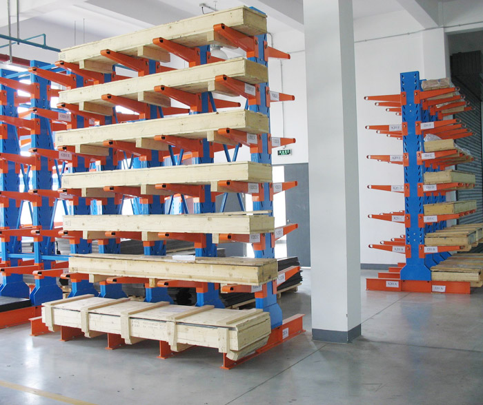 悬臂可以是单面或双面,悬臂式货架具有结构稳定,载重能力好、空间利用率高等特点。货物存取由叉车、行车或人工进行。