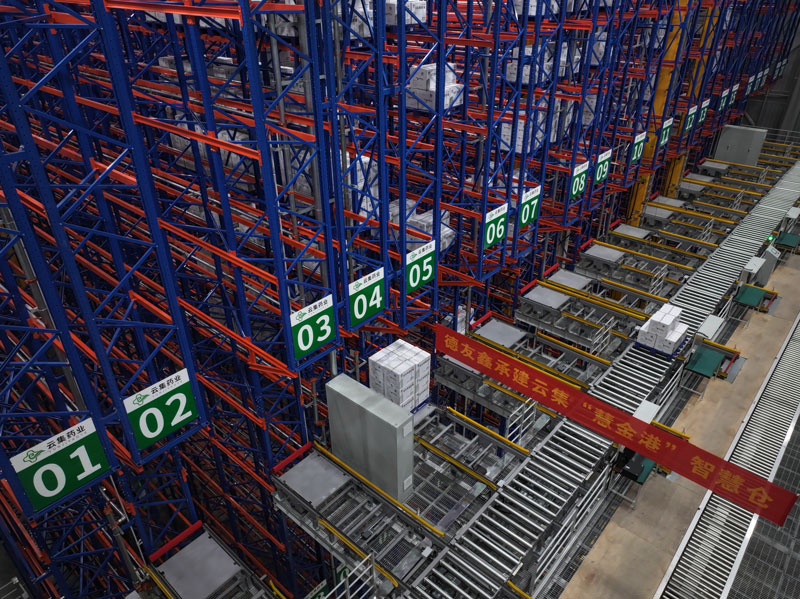 慧金港物流中心一期占地面积82亩,仓库面积近54000m。含自动化立体库、高位整件库、拆零库、中药饮片库、冷链库、分拨中心等;全自动化立体库,高24米,15000m³的冷链库,可涵盖不同温区的冷链药品,结合无人拣选设备、自动传输设备、定制化WMS系统等达到高效运营,总储存量达50万件,分拣速度每小时6000件,吞吐量6万件/天,可辐射整个西南区域!