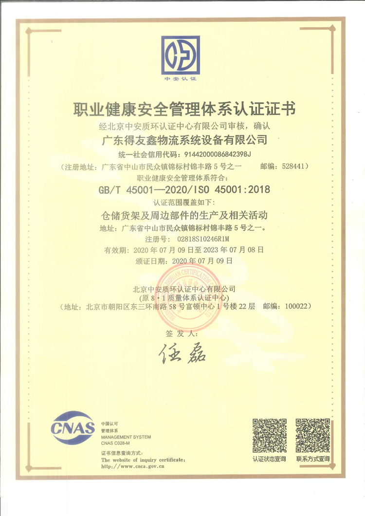 质量管理体系认证证书(zoty中欧·(中国)体育官方网站)